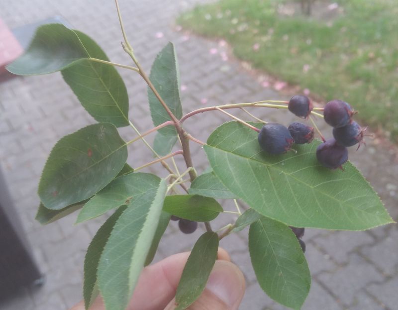 Genau, Felsenbirne, eine meiner Lieblinge. Mehrstämmig, völlig anspruchslos, wunderhübsche weiße Blüte im Frühjahr, dann diese kleinen blaubeerartigen Früchte, die essbar sind (säuerlich/süß) und zum Herbst eine wunderbare Laubfärbung! Frosthart. Unbedingte Kaufempfehlung (man muss dazu sagen, dass sie bei mir in sandigem Boden steht, wie es mit schweren Böden aussieht, weiß ich nicht.