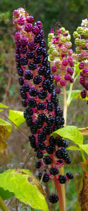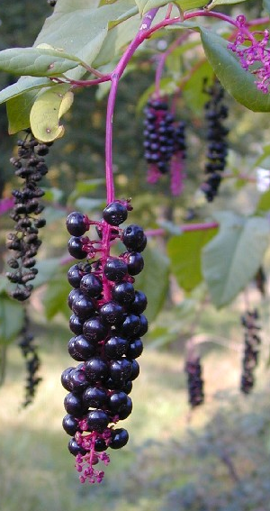 viele Kermesbeeren an der Pflanze.