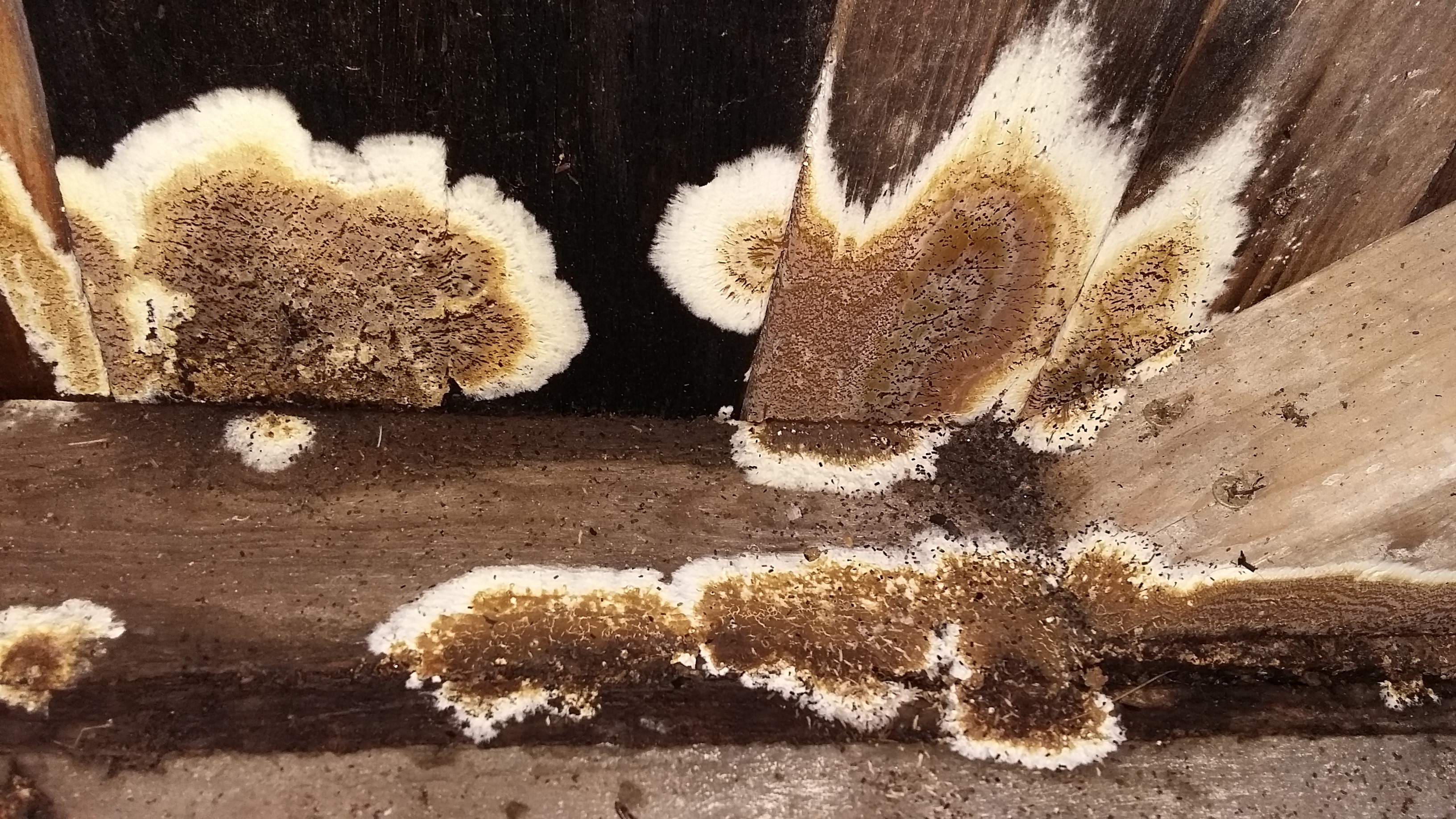 Bei uns im Schuppen treibt ein Unbekannter sein Unwesen. Wir befürchten, dass es sich um den echten Hausschwamm handelt und wären für eine Expertenmeinung sehr dankbar.