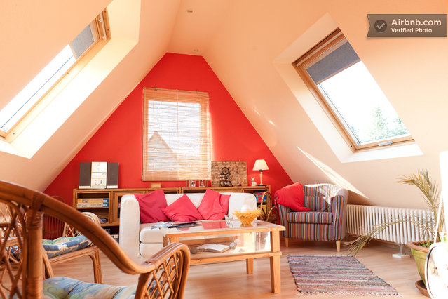 Zwei Wände (eine Seitenwand und ein Schrägwand) könnte man farbig streichen - bitte nicht beide Schrägwände streichen, das macht einen ‚Höhlencharakter‘.