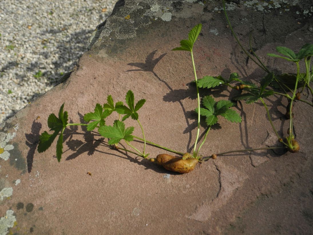das ist Kriechendes Fingerkraut (Potentilla reptans), welches von einer Gallwespenart (Xestophanes potentillae) befallen ist - in den Knollen leben die Larven