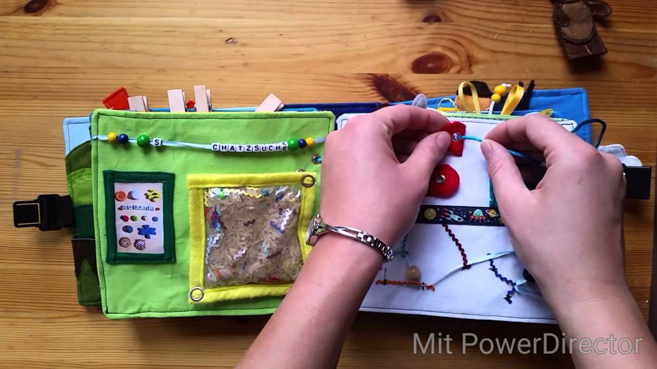 Also z.B. ein Apfel, den man per Klettband abreißen kann und unter dem dann eine kleine Raupe hockt. Oder ein Ball, den man an einer bestimmten Stelle drücken muss, damit es quietscht. Nähtechnisch bin ich gut drauf. Ich möchte noch Reißverschluss, Druckknopf, normalen Knopf, Karabinerhaken, Band und Ösen ins Spiel bringen. Ich brauche dafür noch ein paar Ideen. Das Ganze wird per Fummelarbeit bestimmt nicht vor dem ersten Geburtstag fertig.