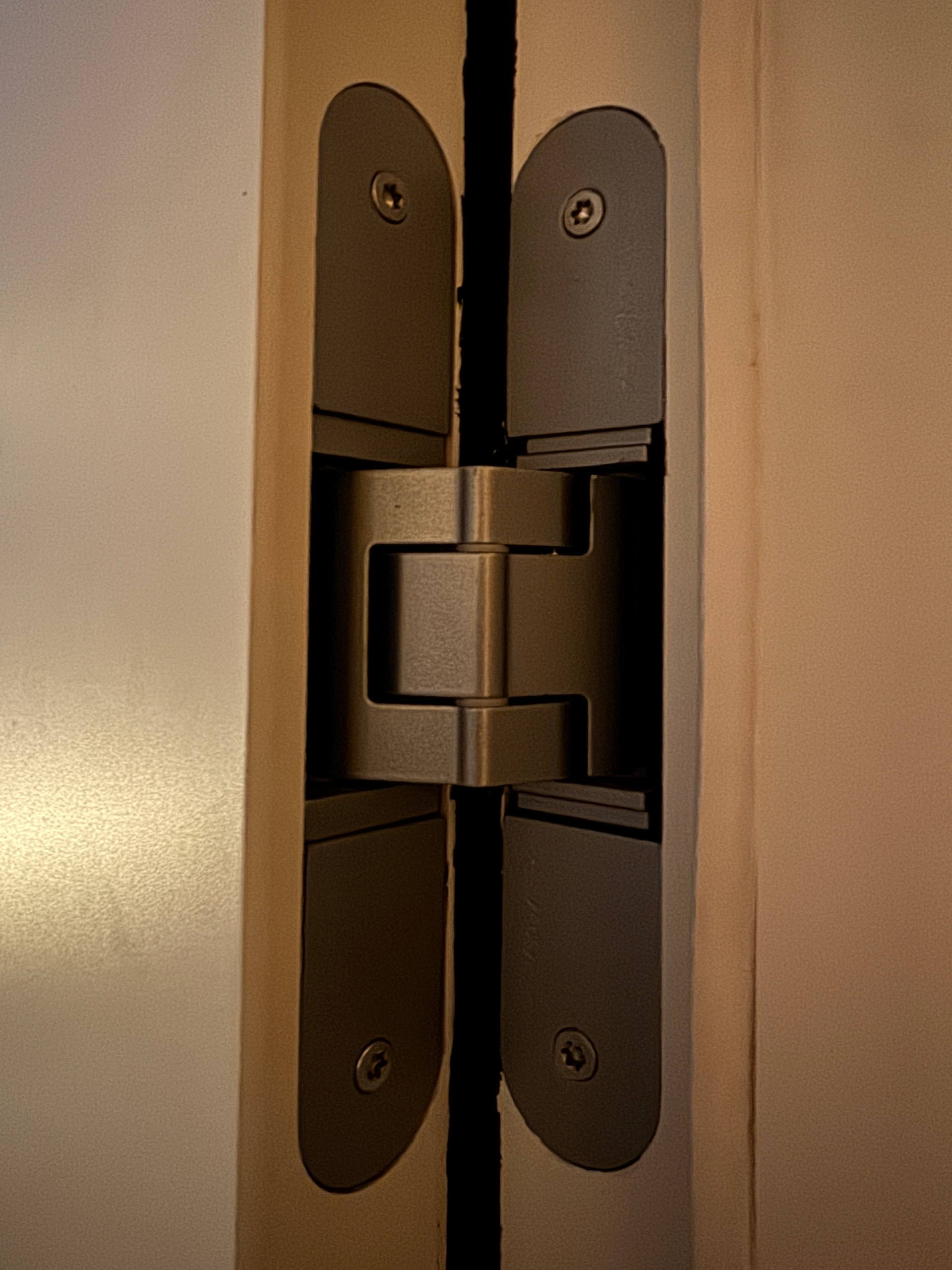 Servus, ich hab an einer Tür diese Scharniere verbaut. Ich brauche aber welche, die die Tür beim öffnen weiter weg von der Wand führt - sodass der Spalt zwischen Tür und Wand größer ist - ich hoffe das Problem wird so klar.