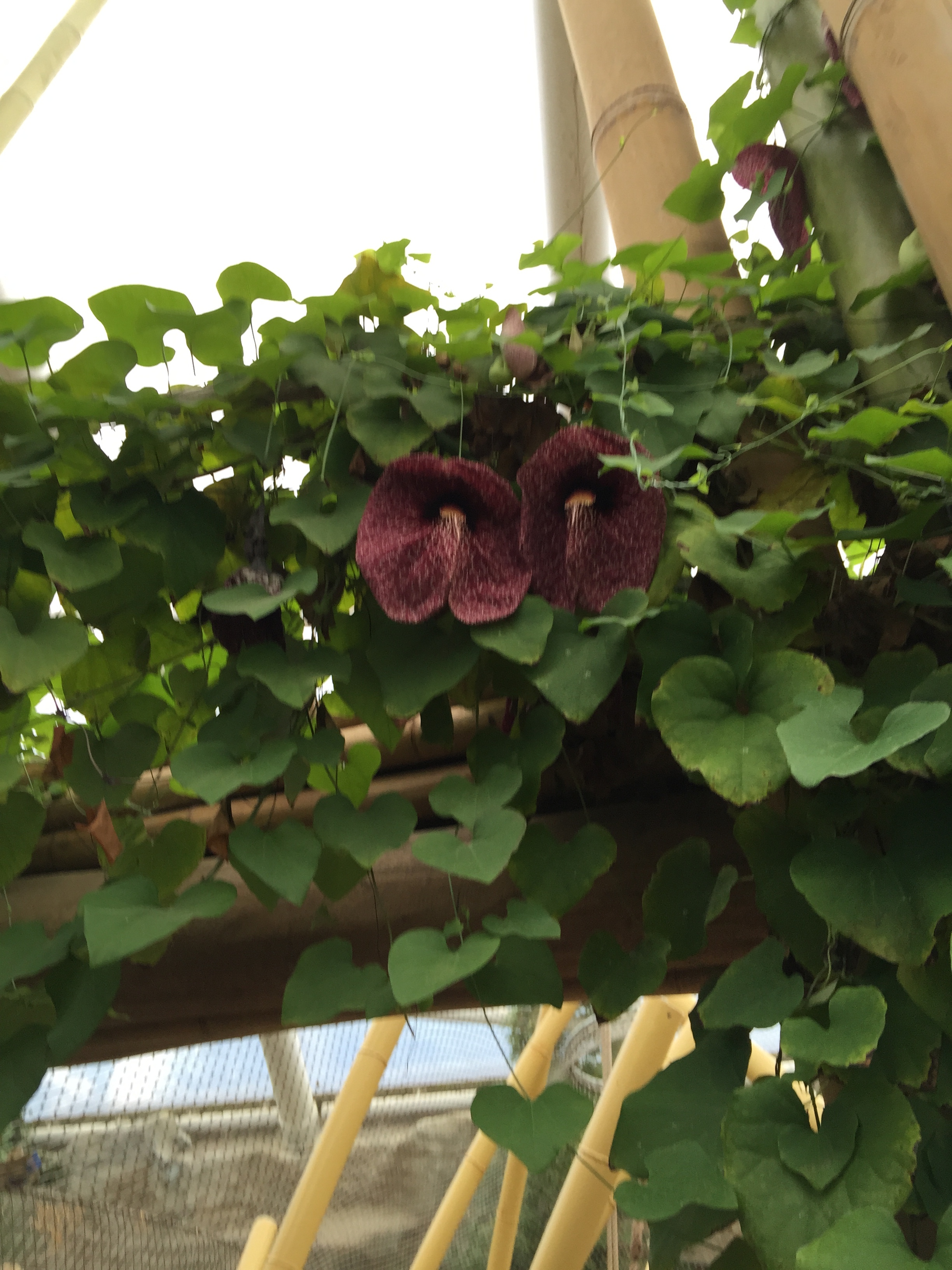 das ist eine Aristolochia gigantea aka Gespensterblume; in günstigem Klima und bei geschütztem Standort hierzulande auch außerhalb von Tropenhäusern hegbar.
