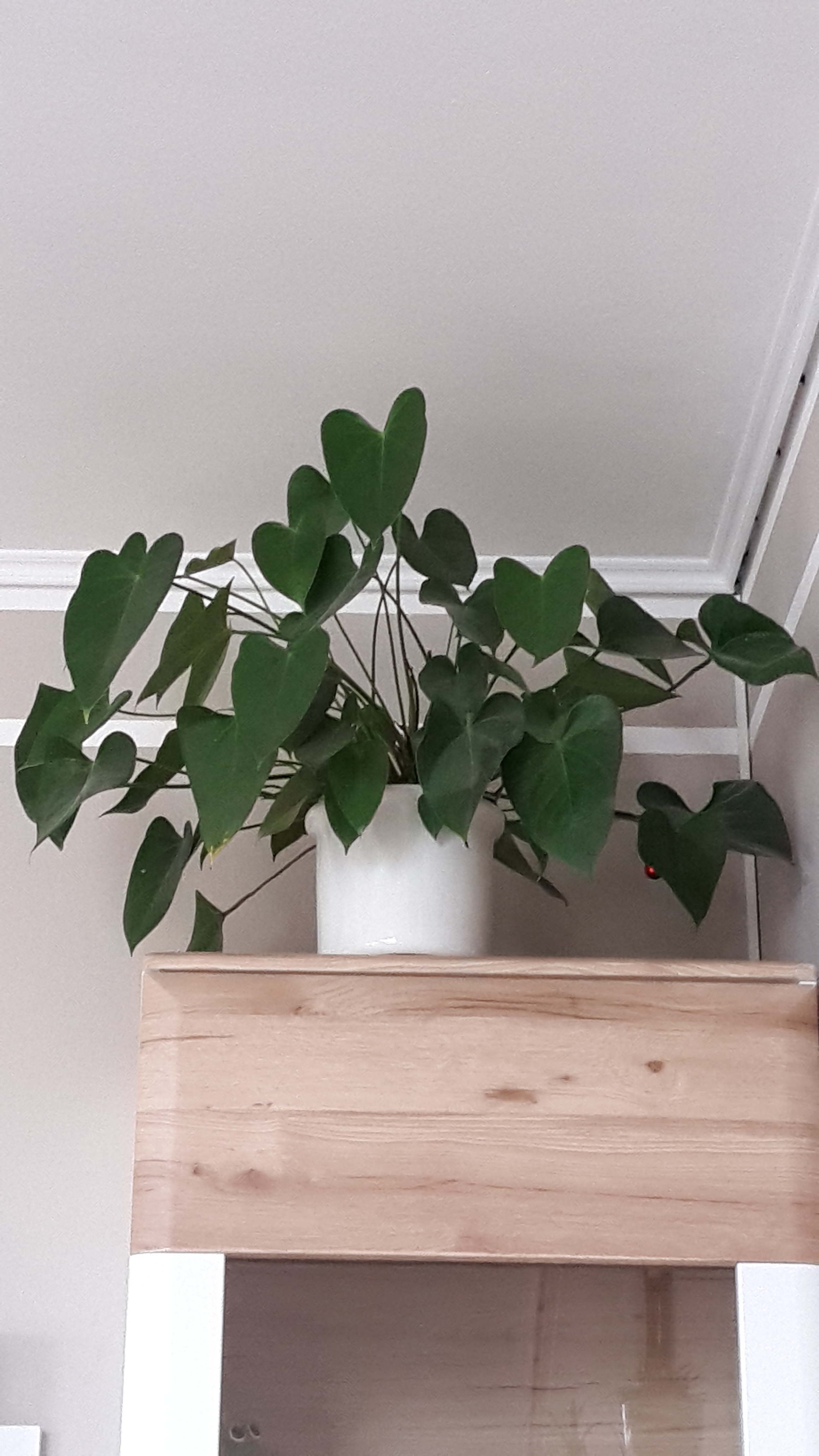 Und davon gibt es eine kleinblättrige Art Anthurium scherzerianum, die im UP abgebildet sein dürfte.