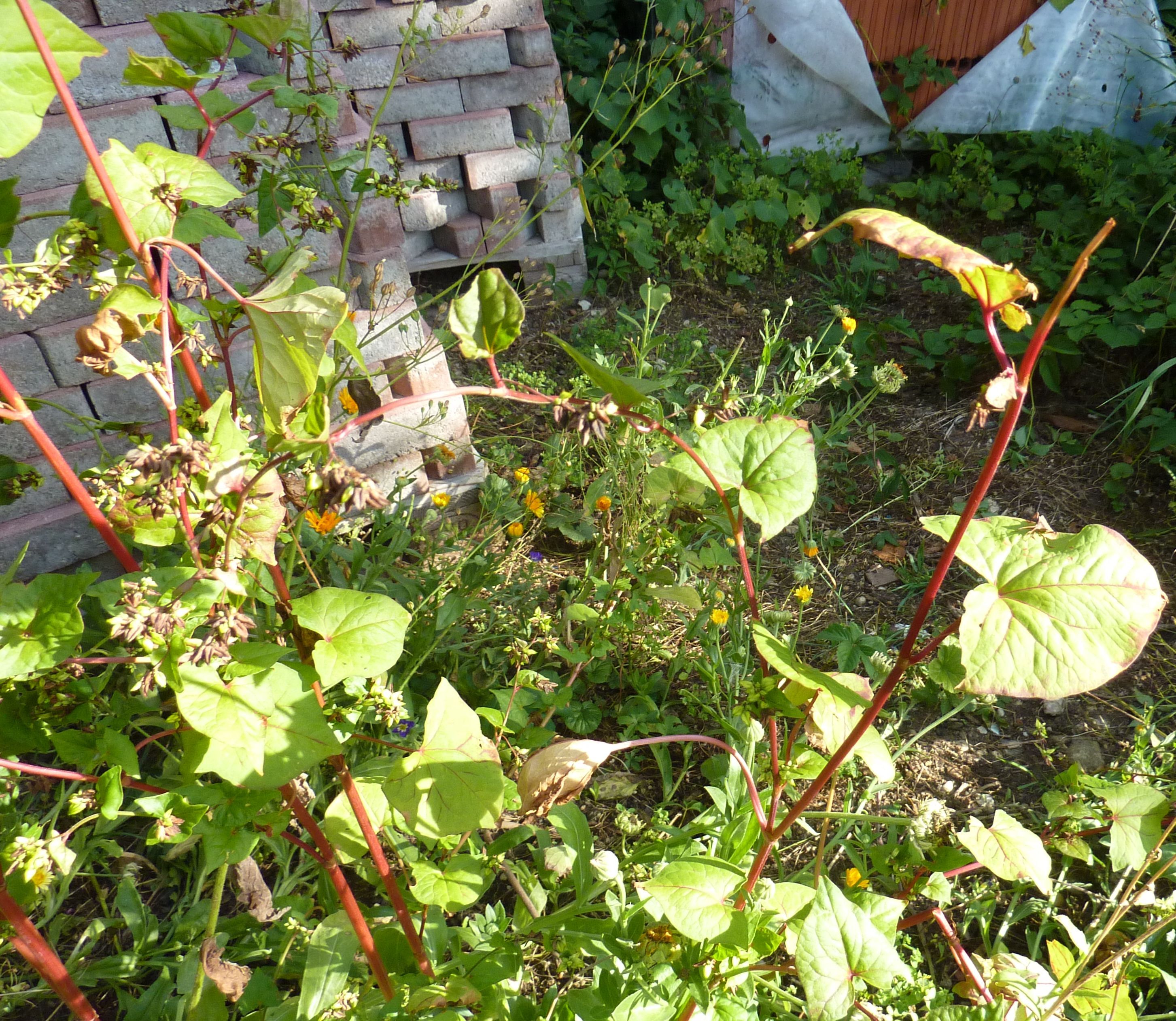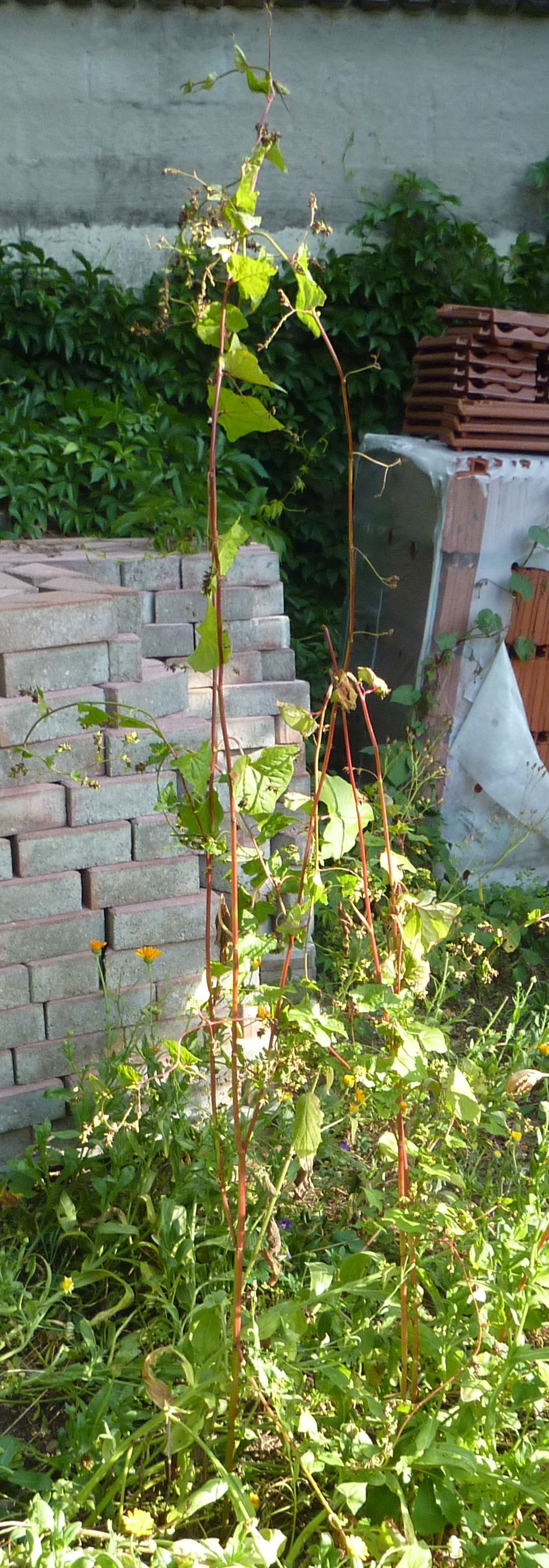 Ja stimmt, müsste ein Knöterich sein, wahrscheinlich ein Schlingknöterich da sich ein Trieb an einem Ast hochgezogen hat.