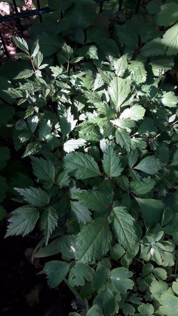 Unten mutet mir nach Astilbe, drunter ein paar Akeleienblätter. Kann man da mal ein Bild vom Grund mit Stiel haben?