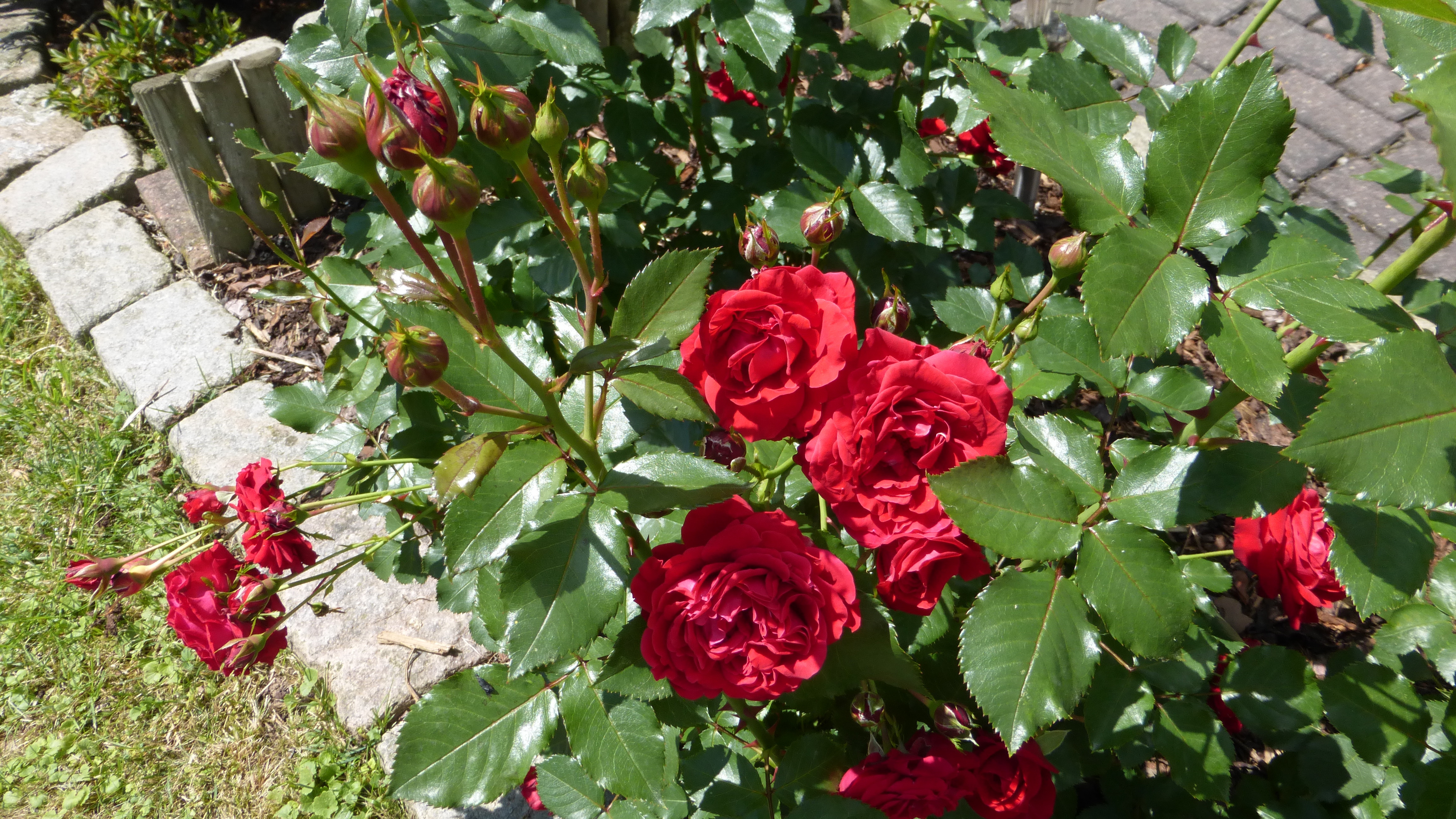 Heckenrosen sind das nicht, eher eine der unzähligen Beetrosensorten: