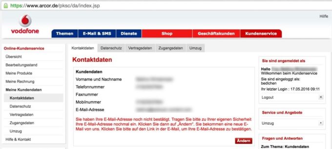 Also log Dich mal bei Vodafone mit Deinen Zugangsdaten ein.