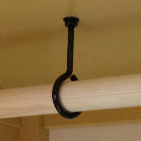 Der Ring der Schraube hat den Durchmesser eines Besenstiels. Oben ist sie durch ein Brett gesteckt und gekontert. Das ganze dient der Aufhängung einer Kleiderstange. Wie heißt diese Art von Schraube?
