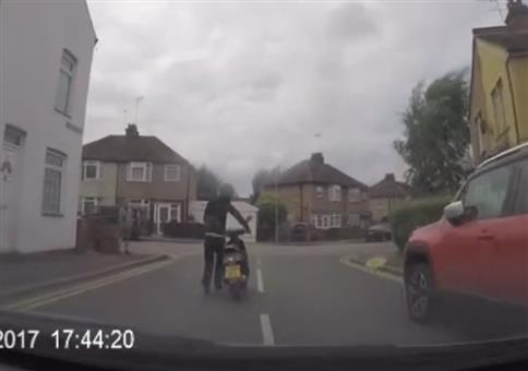 Denn er muss ja auf Passanten und Radler achten, wie kann man da einen übersehen ?