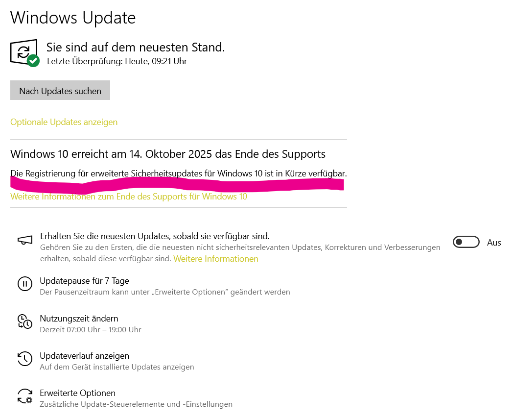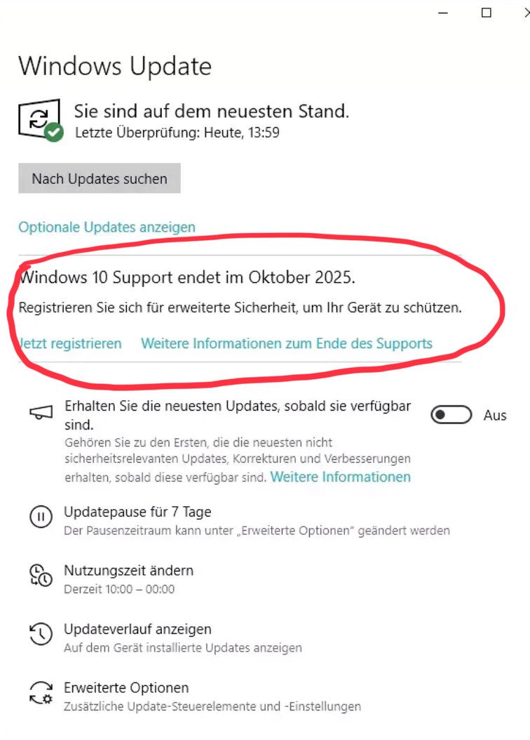 Ich hätte eine kurze Frage zum Ende desWindows 10 Support von Microsoft.