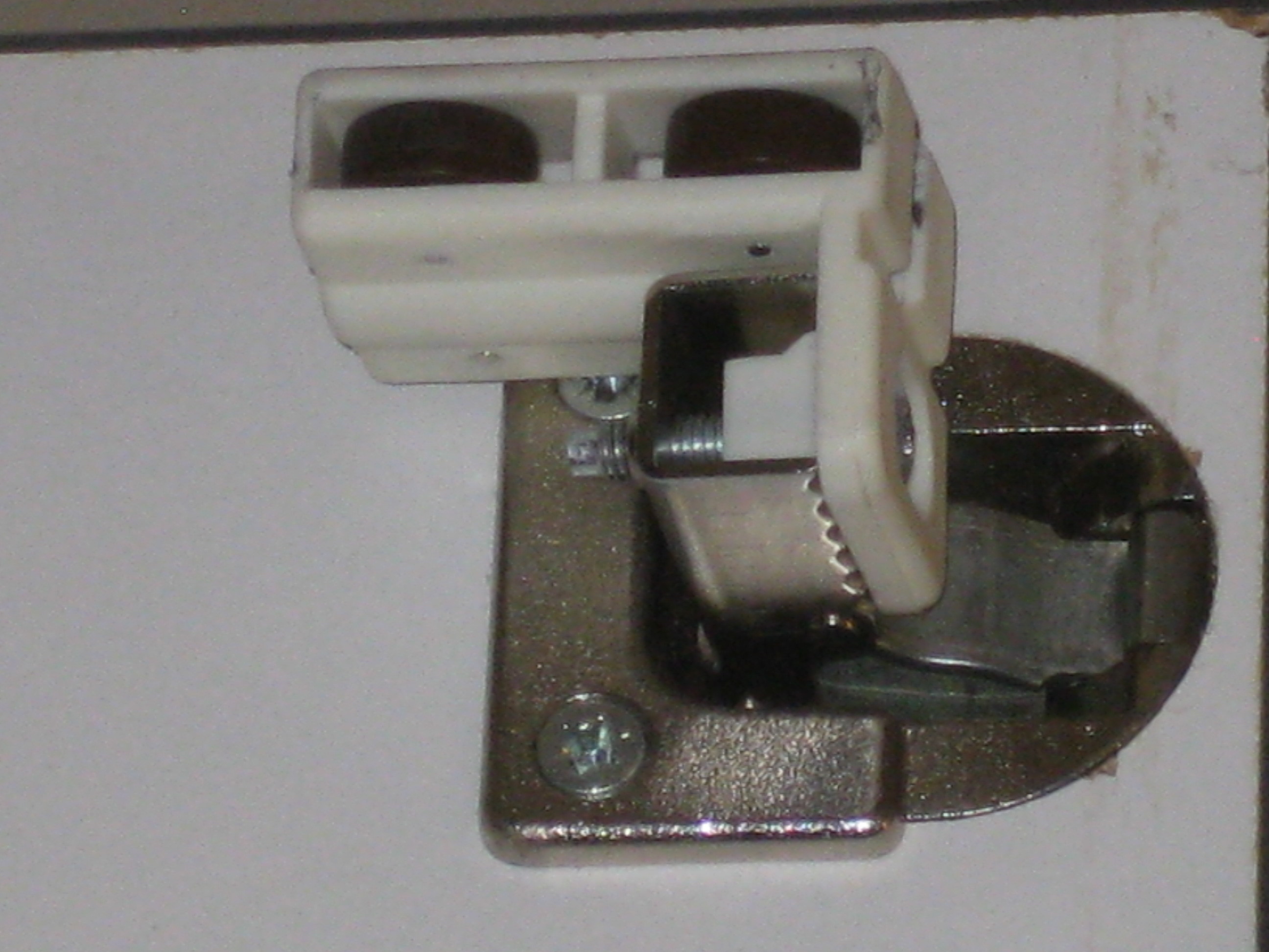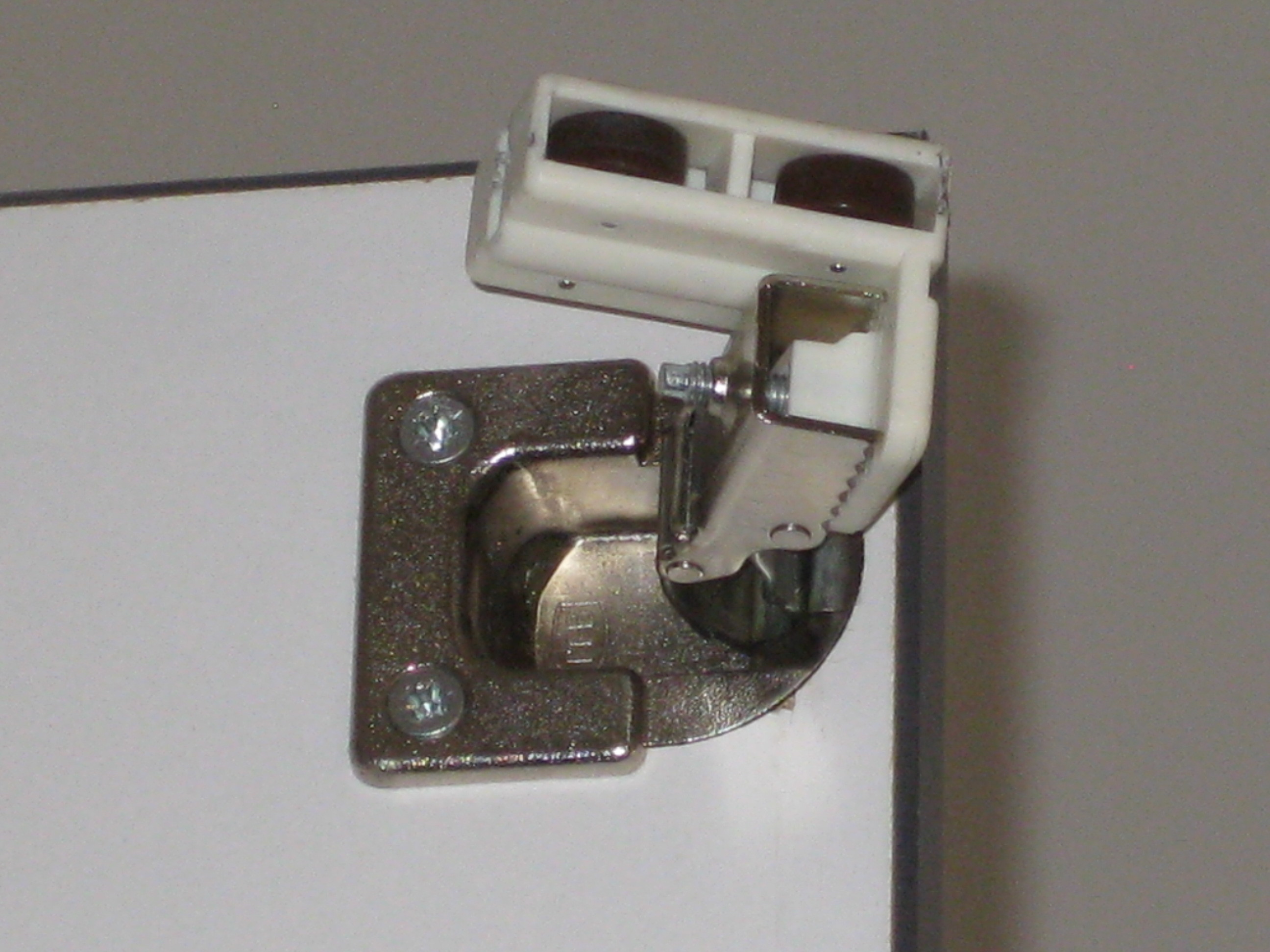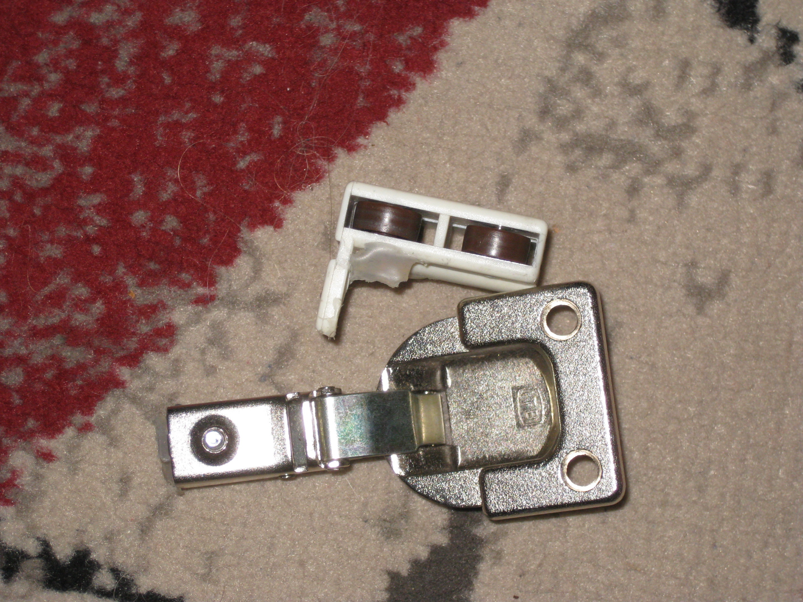 Das Metallteil ist ja ein ganz normales Topfscharnier für Möbeltüren, da wo das Plastikteil mit den Gleitrollen angesetzt ist befindet sich sonst das Wandlager(Festlager).