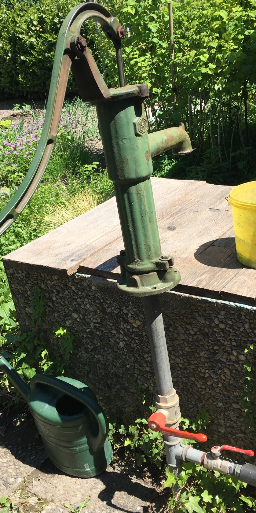 Lasse ich diesen Hand immer in der „Freistellung“ fällt der Wasserpegel ab und die Pumpe zieht nur noch Luft. Ich muss dann oben oben bei der Handschwenkelpumpe mit der Gießkanne Wasser nachfüllen, bist das Wasser aus dem Hahn der Handschwengelpumpe kommt. Danach funktioniert Sie wieder.