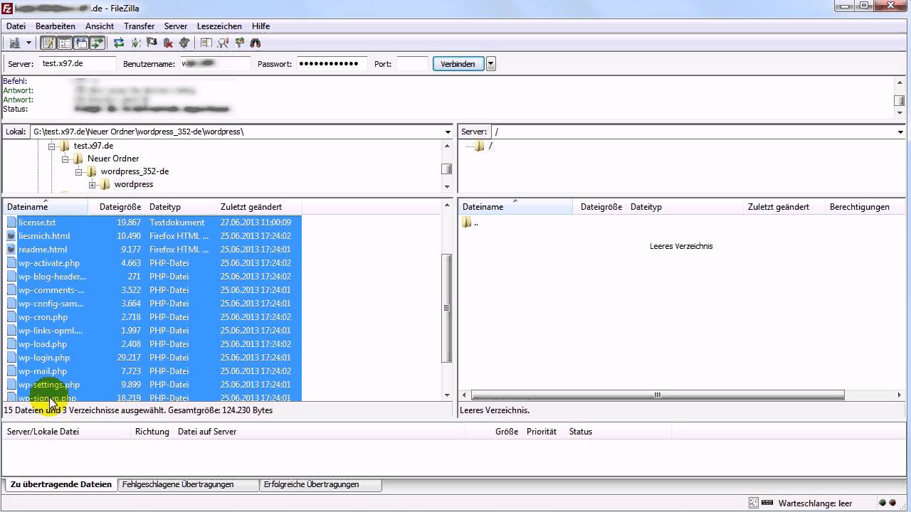 Guten Tag, ich möchte mit Wordpress eine Site anlegen. Leider scheitere ich schon bei der Installation. FileZilla läd die entpackten VERZEICHNISSE (3) hoch, aber nicht die einzelnen Dateien.