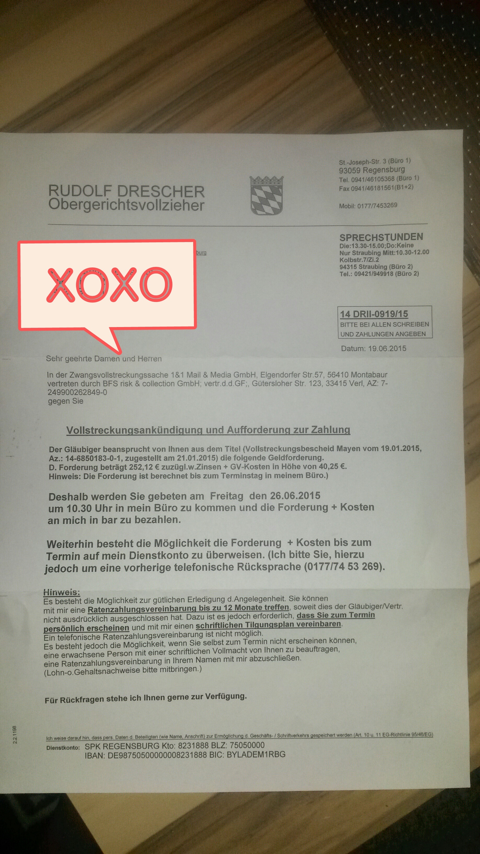 Vertreten durch BFS risk @ collection GmbH Rudolf Drescher Obergerichtsvollzieher.